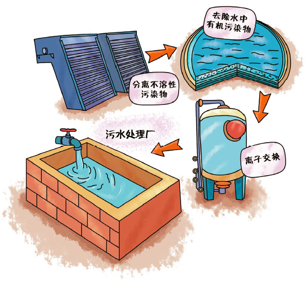 污水三級處理是對經(jīng)一、二級處理后的污水,再應(yīng)用混凝、過濾、離子交換、反滲透等物理、化學(xué)方法去除污水中難溶解的有機物、磷、氮等營養(yǎng)性物質(zhì)。其中,化學(xué)處理法,向污水中投加某種化學(xué)物質(zhì),利用化學(xué)反應(yīng)來分離、回收污水中的污染物質(zhì),常用的有化學(xué)沉淀法、混凝法、中和法、氧化還原(包括電解)法等;物理化學(xué)法,利用物理化學(xué)作用去除廢水中的污染物質(zhì)。主要有吸附法、離子交換法、膜分離法、萃取法等。
